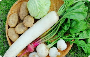 年間数十種の野菜を作る生産者から、今が旬の多様な野菜が届きます。スグ食べでは生産者ごとに商品が異なります。中には年間100種類もの多品種生産をしている生産者も。旬な野菜はもちろん、珍しい野菜とも出会えます。