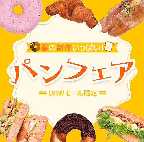 - 今回のフェアでどのようなパンが販売されているのかわかるように、周囲にパンを配置しました。また、おいしくパンが見えるよう、Photoshopでレタッチしています。バナー制作を通して、IllustratorやPhotoshopの基礎や見せ方を学びました。
